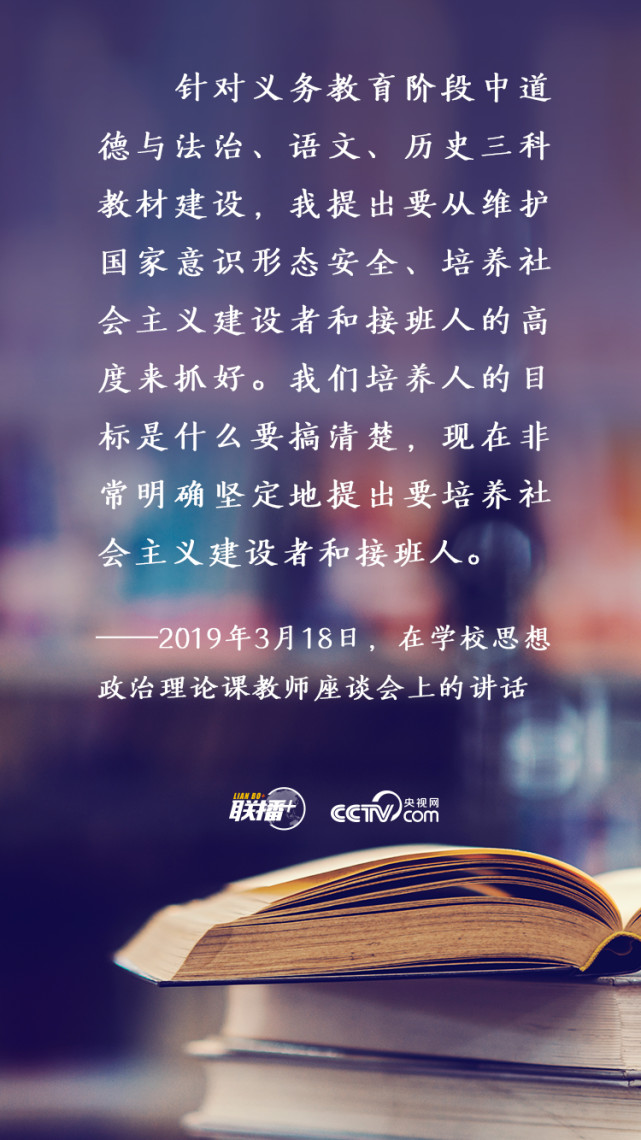 百年大计,教育为本。习近平总书记一贯高度重视培养社会主义建设者和接班人,不止一次对教材编研出版工作提出殷切期望。央视网《联播+》为您梳理总书记有关精彩论述,与您一起学习领悟。