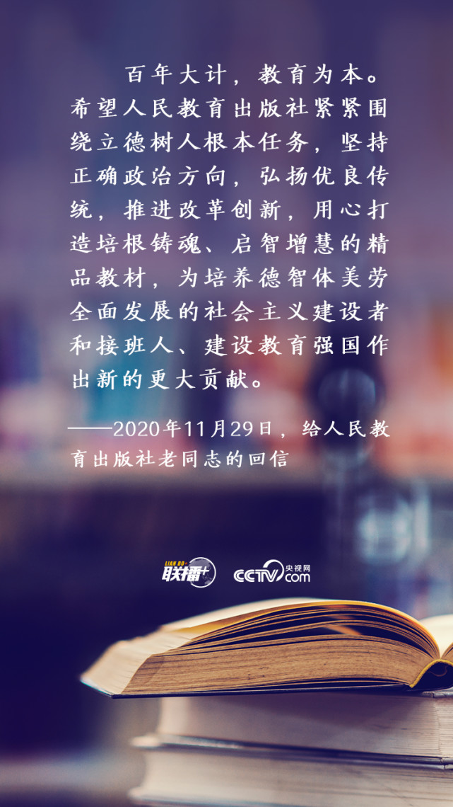 联播+近日,习近平总书记给人民教育出版社部分离退休老同志回信。他希望人教社继续“用心打造培根铸魂、启智增慧的精品教材”。