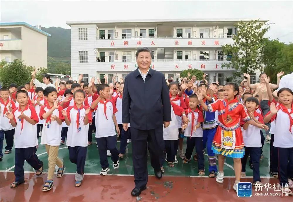 9月16日至18日,中共中央总书记、国家主席、中央军委主席习近平在湖南考察。这是16日下午,在郴州市汝城县文明瑶族乡第一片小学,师生们簇拥着习近平步出校园。新华社记者 李学仁 摄