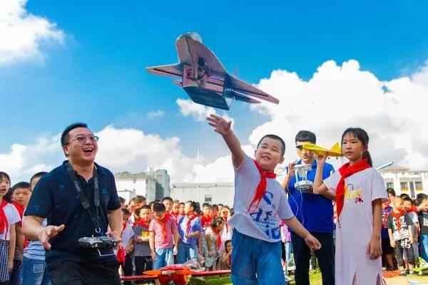 9月1日,江苏如皋磨头小学学生参与航模表演。徐慧 摄